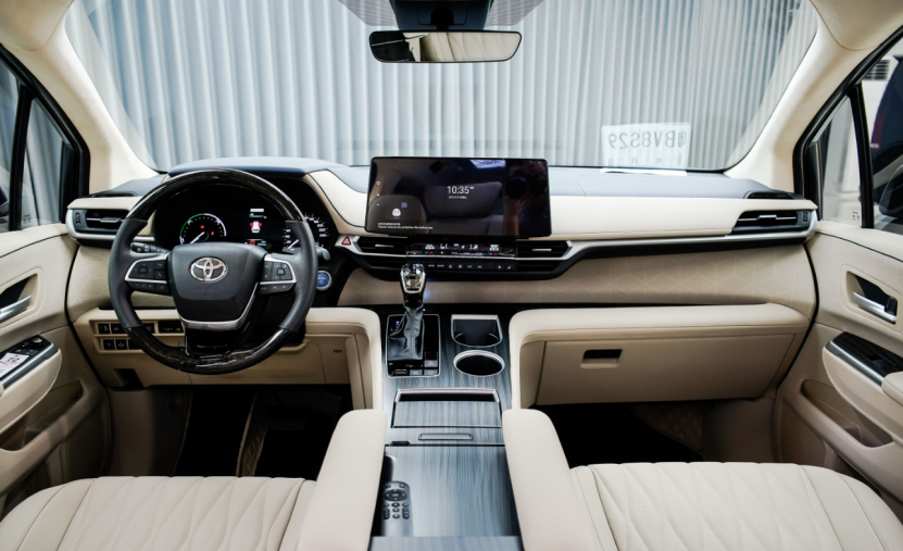 赛那的内饰依然是典型的丰田实用风。虽然屏幕尺寸也不小,但车机系统的UI设计、流畅度以及语音交互能力只能说是“够用”级别,内饰用料也存在较多的硬塑料件,整体氛围缺乏一些温馨感和高级感。