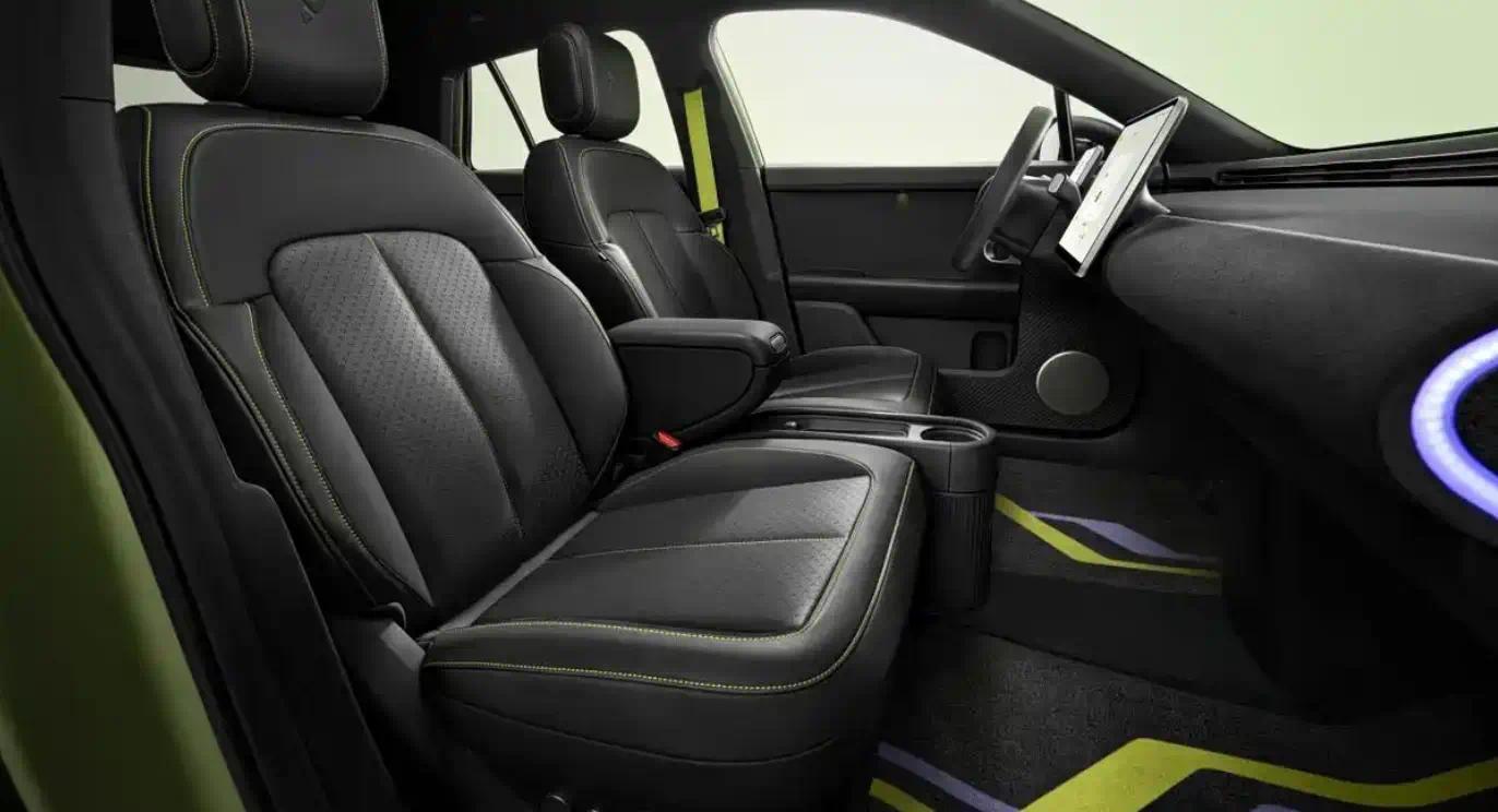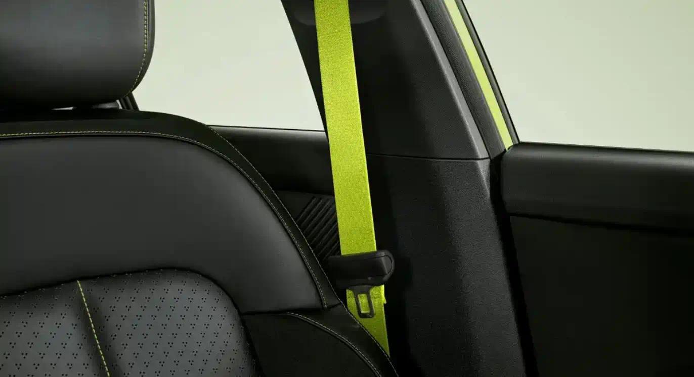车内采用千禧之夜主题,以发光版沉静黑内饰与黑色织物顶棚为基底,通过细节处的亮色点缀,前、后排座椅采用千禧萤光安全带及座椅缝线,与千禧频率定制脚垫形成呼应,头枕logo则以高温凸印技术呈现起伏纹理。